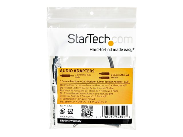 Startech 4 Position to 2x 3 Position 3.5mm Headset Splitter Adapter