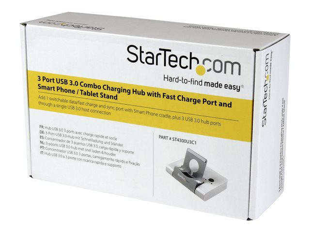 StarTech.com 3 Port USB 3.0 Hub plus Combo Fast Charge Port (2.1A) with Smartphone / Tablet Stand