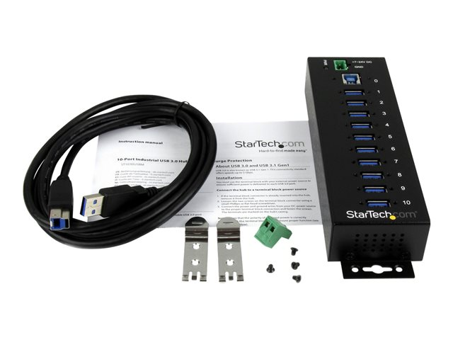 Industriell USB-A-hubb i metall med ESD- och överspänningsskydd - Monterbar på DIN-skena, vägg eller skrivbord - TAA-kompatibel USB-expansionshubb - Hubb - 10 x SuperSpeed USB 3.0 - DIN-skenmonterbar - Likström - för P/N: ITB20D3250, USB312SAT3CB, USB315CB2M, USBLT1MWS, USBLT2MBR, USBLTM1MBK, USBLTM1MWH