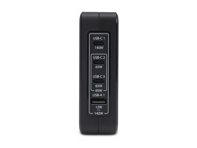 Strömadapter - GaN-teknik - 140 Watt - 5 A - Strömmatning 3.1 - 4 utdatakontakter (USB, 3 x USB-C) - svart